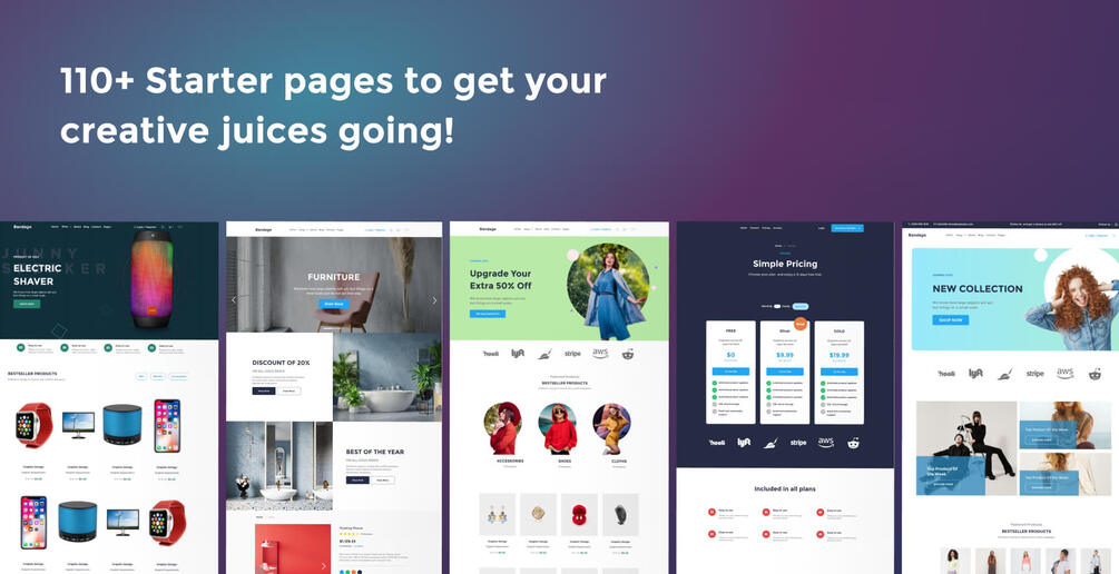 Whether you're building an e-commerce website or a service website, this UI kit bundle has you covered. Build multi-niche websites at a low cost and with no effort.